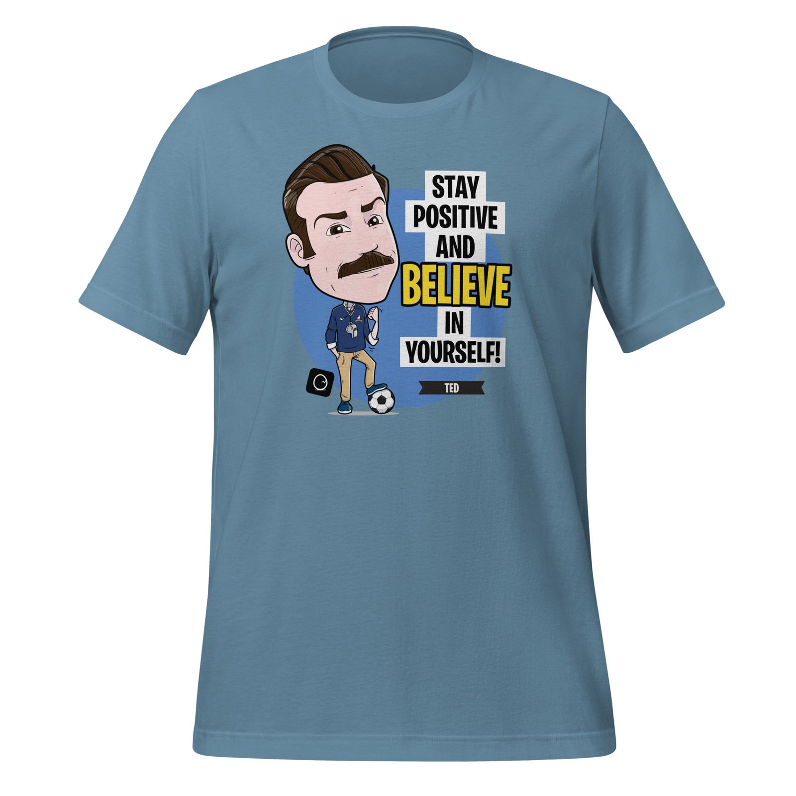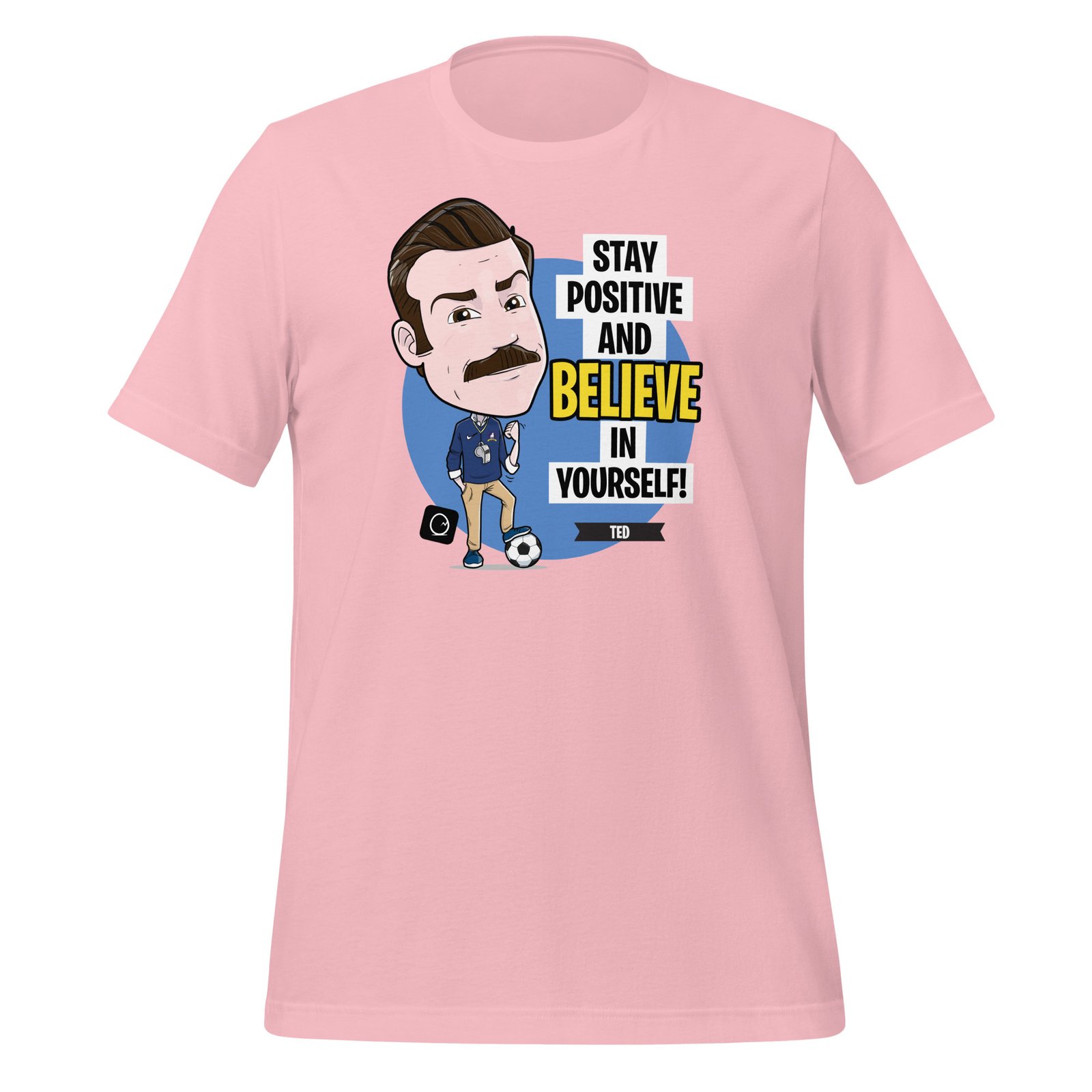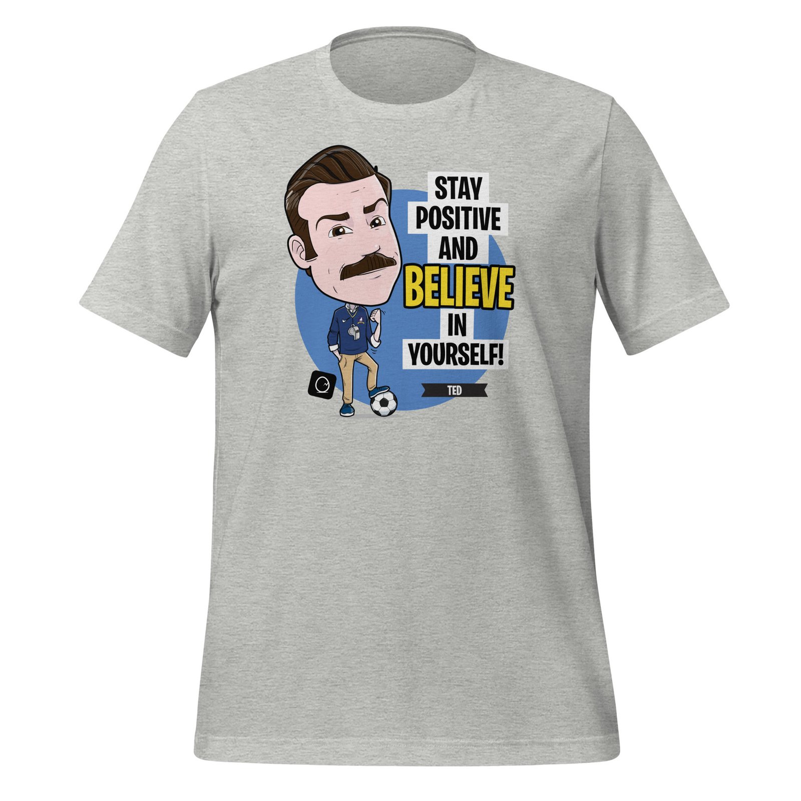 Stay positive and believe in yourself—just like Coach Lasso would say! This is perfect for fans of Ted Lasso who want a daily reminder to keep their spirits up and face challenges with a smile. Featuring a fun and motivational design of Coach Lasso himself, this tee combines comfort with inspiration. Wear it proudly and let everyone know that, no matter what life throws your way, you’ve got the optimism and drive to tackle it!